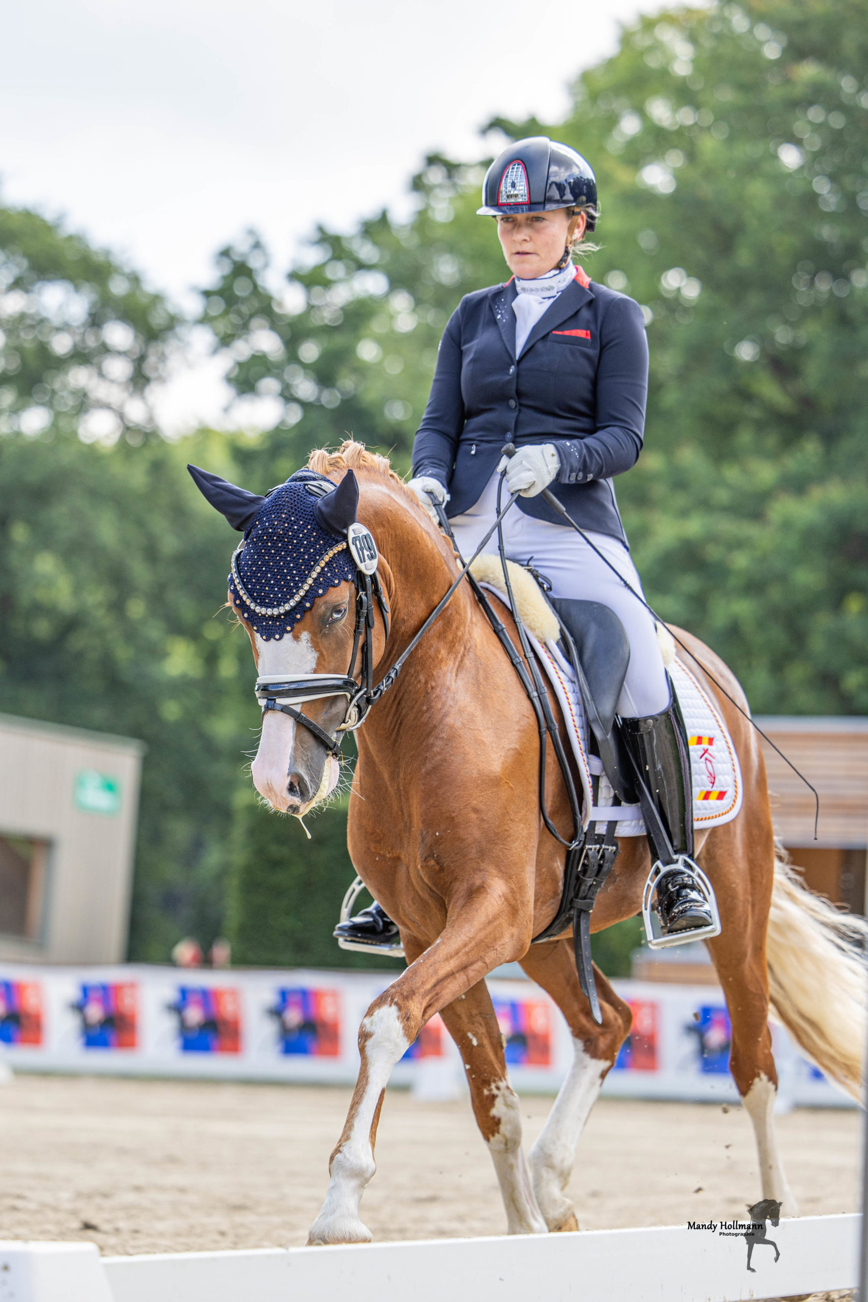 Wenke Kraus erreicht mit Pott`s Dallpacino mit 8,4 den 2. Platz im Oldenburger Landeschampionat der 4 – jährigen Reitponys.