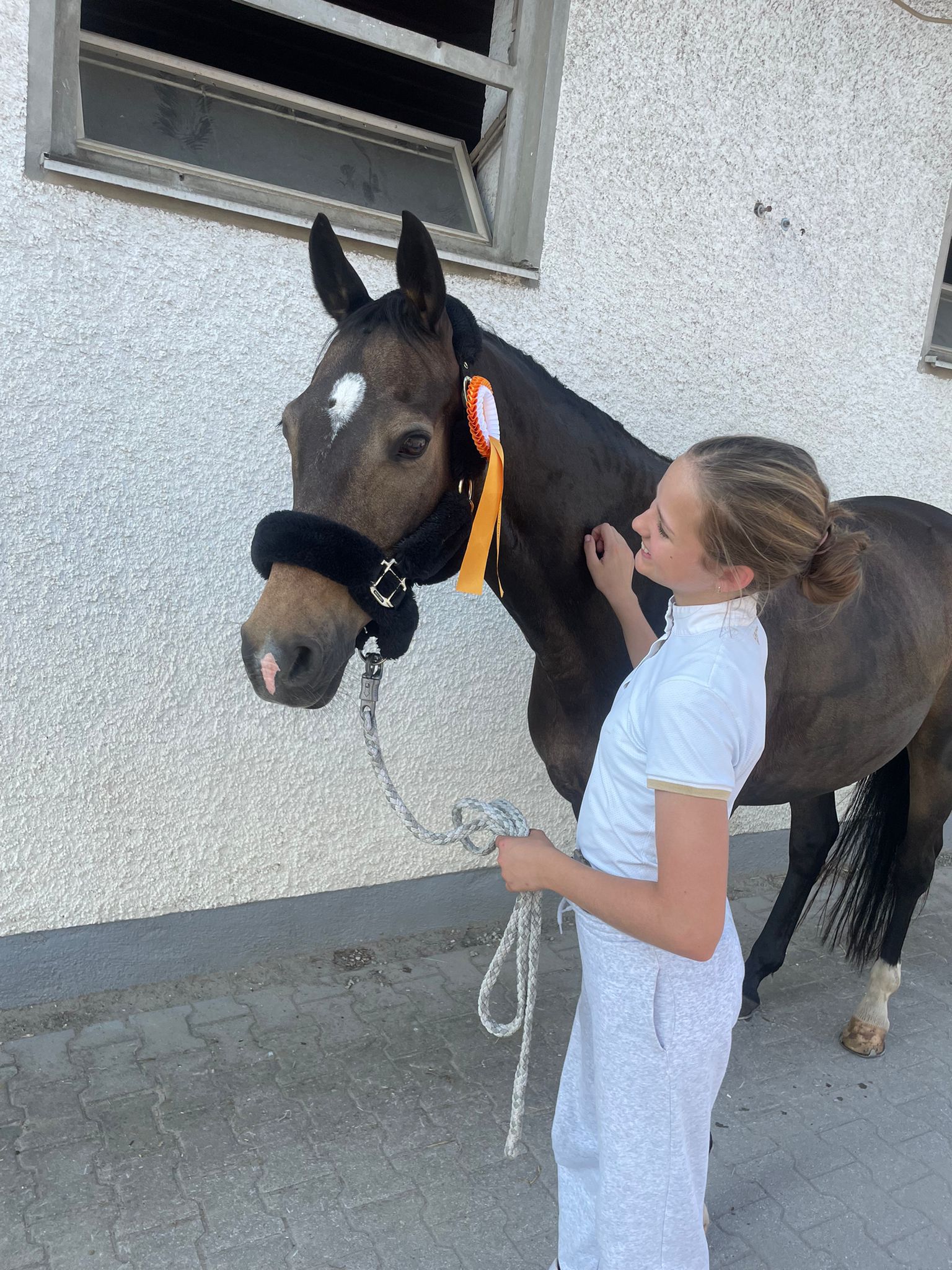 Pott`s Deja-Vu, erst 6 Jahre alt trägt gleichzeitig 3 Reiterinnen zum Erfolg: Lena Fischer und Ihre Tochter im L – und E – Level und Lara Siebrandt bis zum Sieg in der M-Dressur.